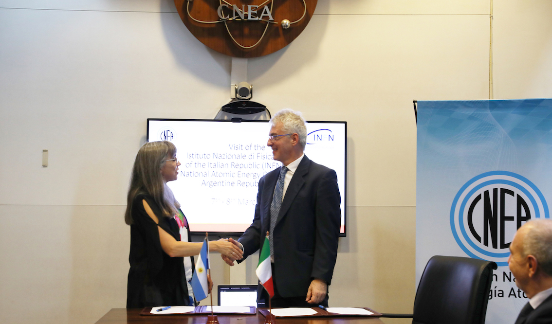 The study of astroparticles and research in cancer therapy are the focus of two specific agreements signed on March 7 in Buenos Aires by Adriana Cristina Serquis, president of CNEA, the Comisión Nacional de Energía Atómica, and Antonio Zoccoli, president of INFN.